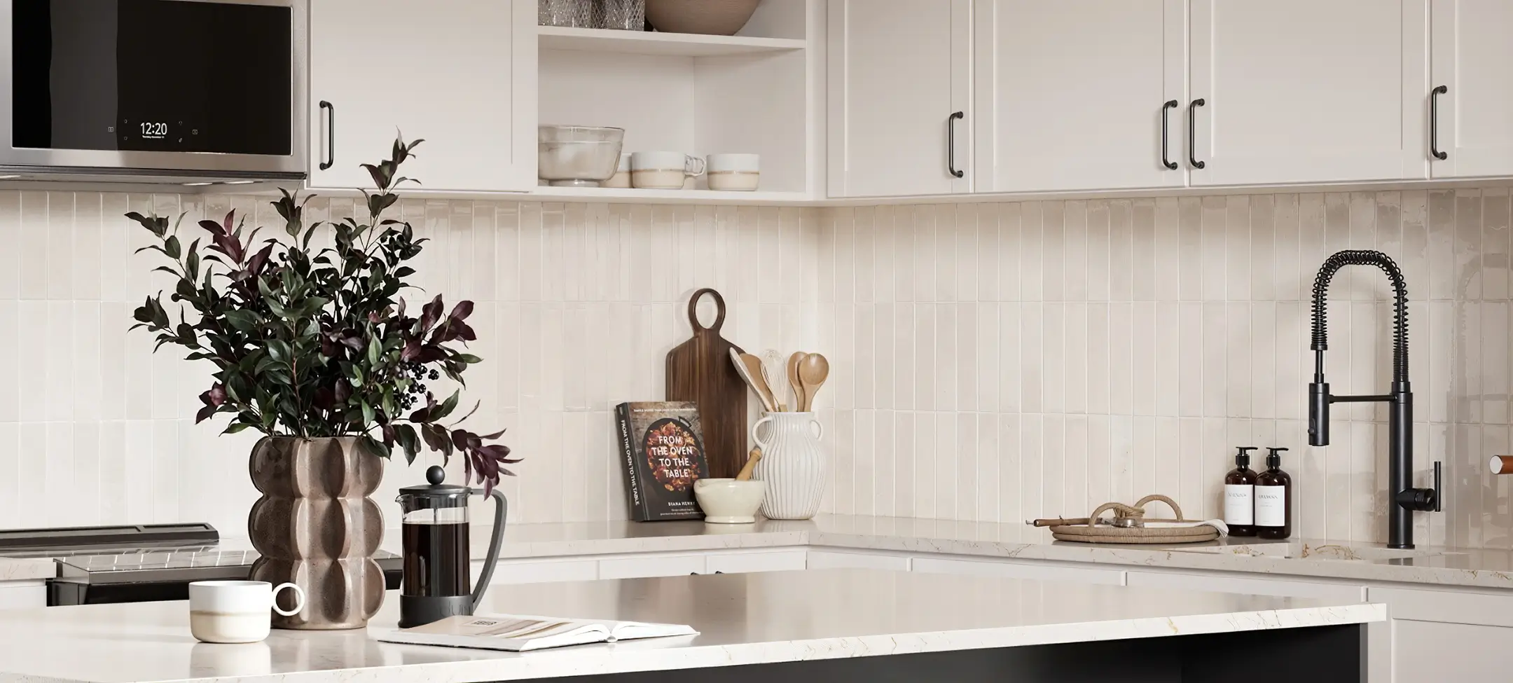 Treat your cabinetry as you would any fine furniture. We recommend mild soap and water—it’s effective, economical, and what we use in our own factory. Once clean, dry the surface completely and apply a silicone-free polish. Visit our Care and Cleaning page for full guidance.